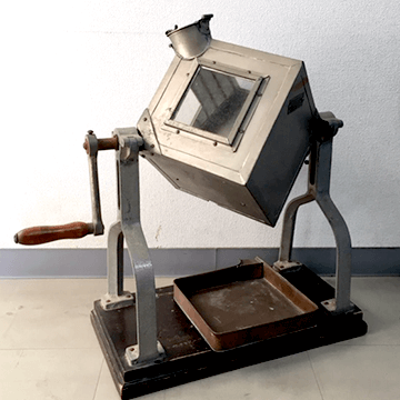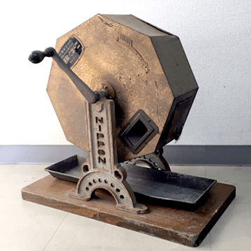 その起源を明確に記した現存する資料/文献などは存在しませんが、明治時代後期より、販売促進・商売繁盛の目的で廻轉抽籤器は使われていました。見た目こそ時代を写すように多種多様にありますが、大まかな仕組み自体は当時から大きく変わることはありません。私たち渡辺徽章は、その100年以上にもわたる歴史を発展・継承すべく、現存する唯一の国内メーカーとして、この40年あまり、独自に機構開発し、製品精度向上に努めてまいりました。