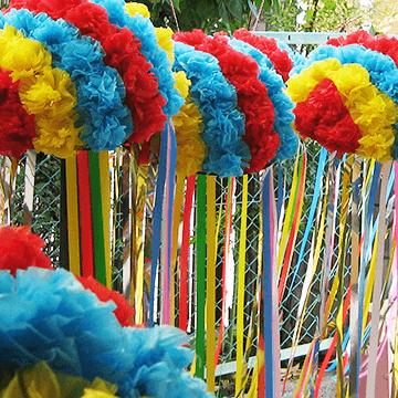 くす玉とは、その昔【薬玉】【久寿玉】と表記され、起源は薬草などを錦の袋に入れ、造花や色糸で装飾したものに延命長寿・無病息災の願いを込めて飾ったことから始まりました。現在では特に割り玉のことを指し、中に紙吹雪や風船などを詰めて使うくす玉で、記念式典やスポーツ大会の入賞祝い、選挙などの当選祝いなど、広く祝い事に用いられております。