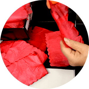 その中でも特に手間暇をかけている工程が和紙花の手染色です。